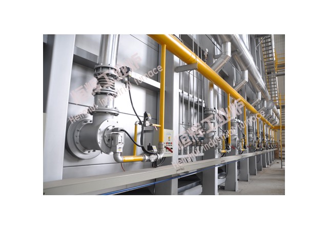 由高速調溫自控燒嘴、燒嘴控制器和各種自控閥,組成了自控燃燒系統(tǒng)。這種新型燃燒系統(tǒng),具有出口速度高(100~160m/s)、燃燒充分、節(jié)能效果顯著、NOx產物低的特點。由于火焰出口速度高,強化了爐內氣體的循環(huán)和對流,提高了爐溫的均勻性和熱效率,從而提高了加熱質量,縮短了加熱時間。高速調溫自控燒嘴系統(tǒng),可實現點火、燃燒能力調節(jié)、熄火報警、自動保護及再點火等全過程的自動控制。為高精度爐溫自動控制提供了技術保證。