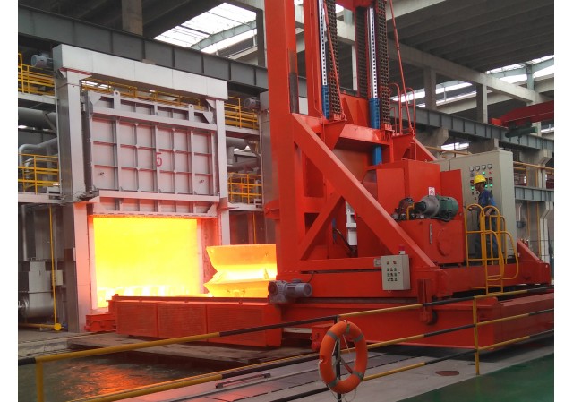 生產(chǎn)線配有一臺快速下水(油)淬火操作車,該操作車可上下、左右、前后六個(gè)方向移動。工件熱處理完成后,操作車迅速進(jìn)入爐內(nèi)將工件從爐膛內(nèi)叉出,并快速落入水池或淬火液池內(nèi),整個(gè)轉(zhuǎn)移過程可控制在30秒內(nèi)完成。