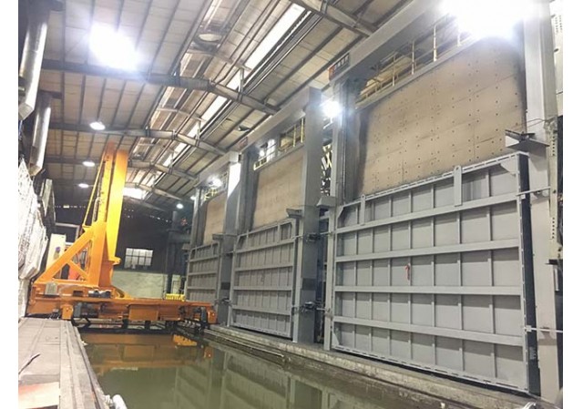 生產(chǎn)線配有一臺快速下水(油)淬火操作車,該操作車可上下、左右、前后六個方向移動。工件熱處理完成后,操作車迅速進入爐內(nèi)將工件從爐膛內(nèi)叉出,并快速落入水池或淬火液池內(nèi),整個轉(zhuǎn)移過程可控制在30秒內(nèi)完成。