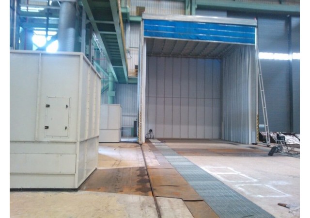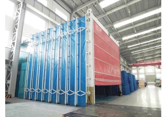 伸縮移動噴漆間前室為鋼結(jié)構(gòu)框架,可縱向自由伸縮移動。噴漆時,先將前室合攏,將大型工件或重量較大工件吊至噴漆位,再將前室打開,進行噴漆作業(yè)。此外,在不噴漆的工作時間內(nèi),可將前室合攏,騰出空間為其他可與噴漆交叉作業(yè)的工序使用。