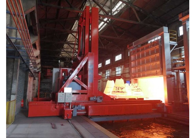 生產(chǎn)線配有一臺快速下水(油)淬火操作車,該操作車可上下、左右、前后六個方向移動。工件熱處理完成后,操作車迅速進(jìn)入爐內(nèi)將工件從爐膛內(nèi)叉出,并快速落入水池或淬火液池內(nèi),整個轉(zhuǎn)移過程可控制在30秒內(nèi)完成。